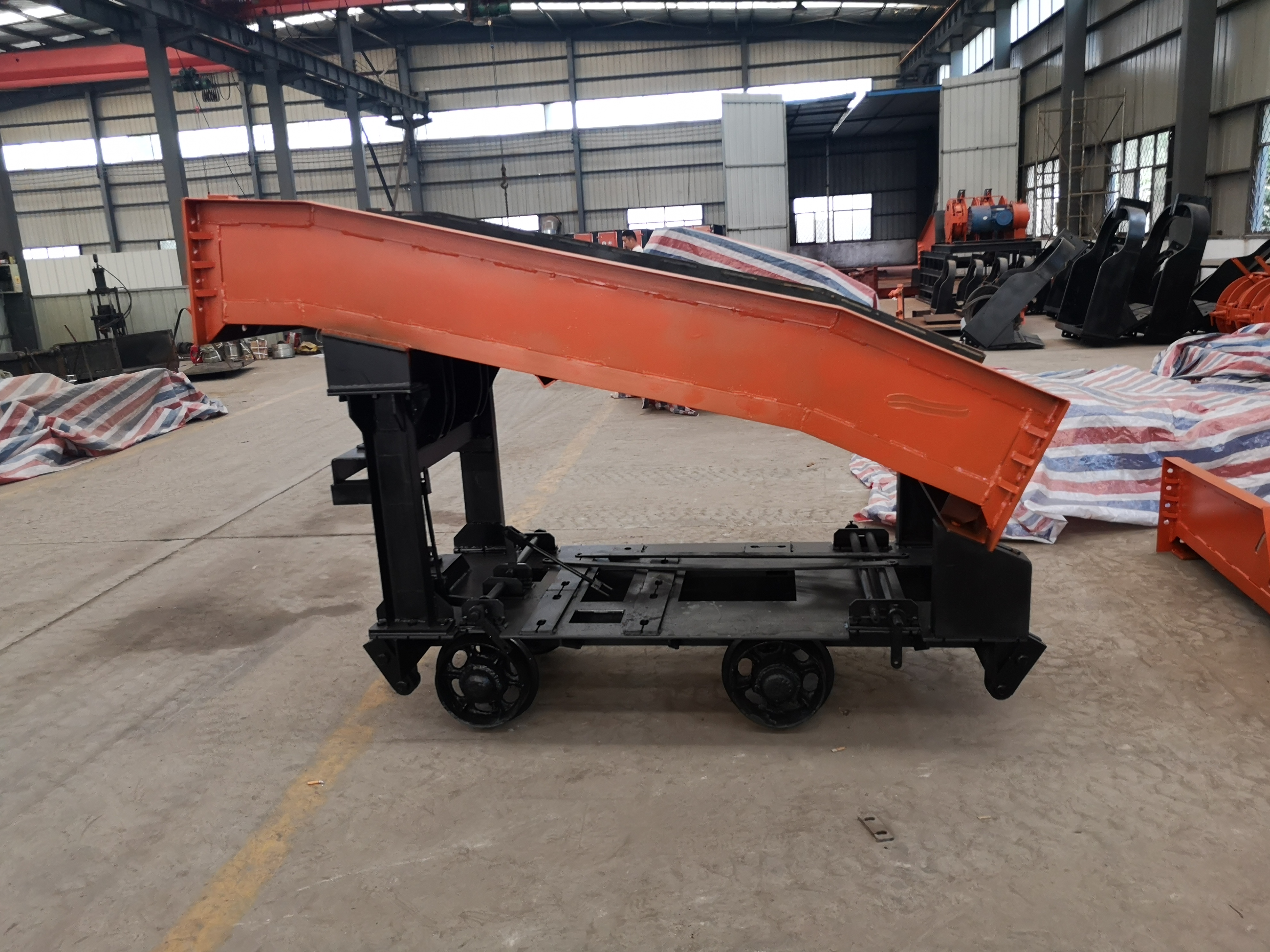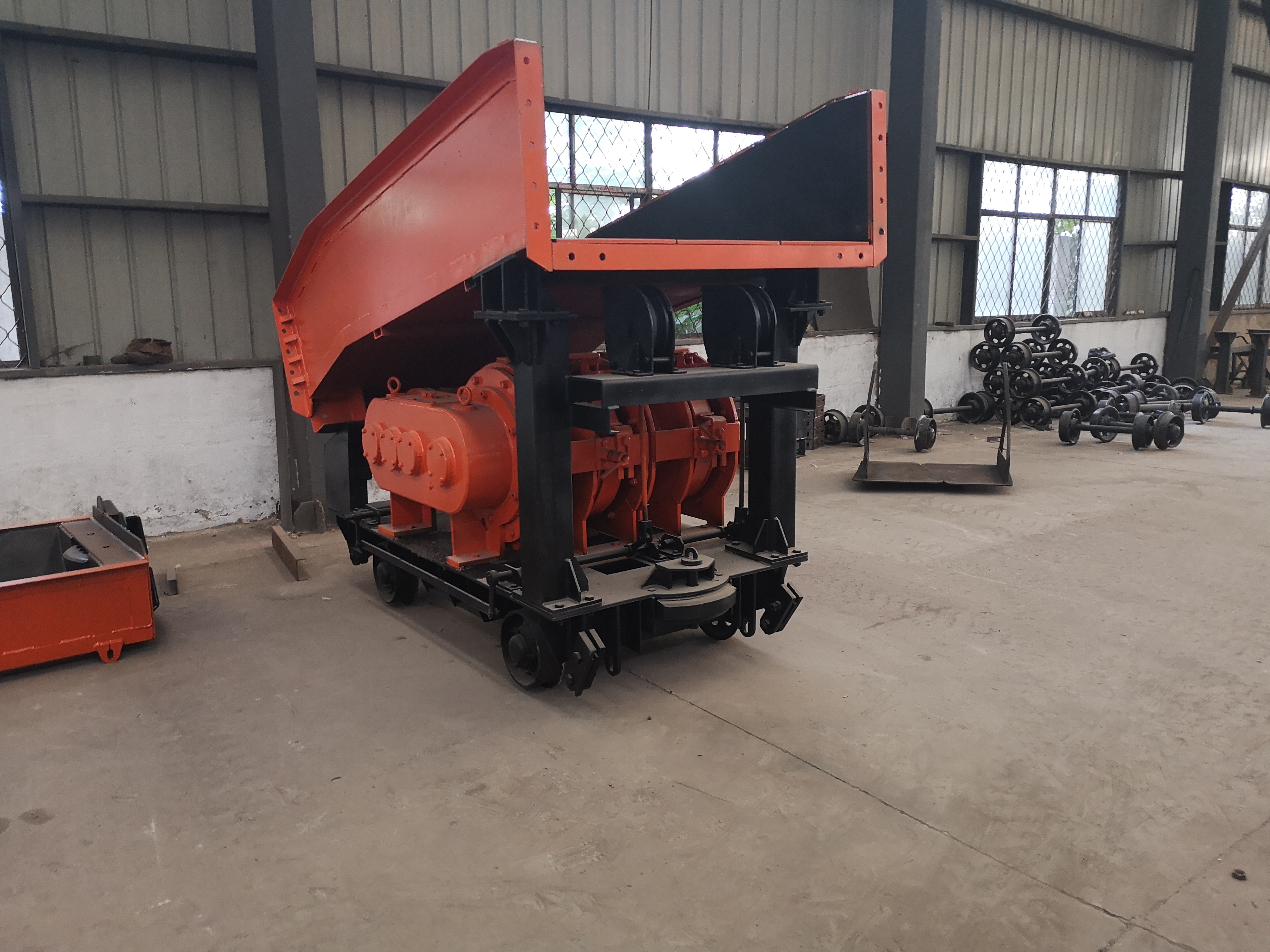 耙斗裝巖機(jī)主要由固定楔、尾輪、耙斗、操縱機(jī)構(gòu)、臺(tái)車、絞車、導(dǎo)向輪、進(jìn)料槽、中間槽、卸載槽、電氣部分等組成