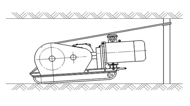 (1)在安裝時(shí)必須注意將安裝處的底板上的浮煤,碎石清理干凈,直到露出巖石為止,并且應(yīng)使地基平坦,無凹凸現(xiàn)象,最后用支柱將絞車?yán)卫蔚捻斔涝陧敯搴偷装逯g。